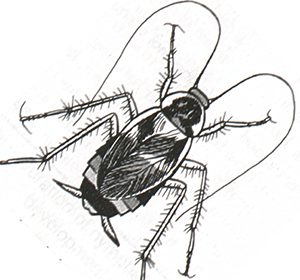 The American cockroach is probably the largest cockroach that infests dwellings. Adults are red-brown with a pale yellow border around the pronotum. Females may produce 50 egg cases in 12 months, these Oothca are usually dropped or glued to surfaces within reasonable proximity to food and water. Up to 16 young nymphs hatch and take 6-12 months to develop to adults. These cockroaches like moist, dark conditions and live in roof and sub floor voids, walls, as well as sewers and drains. They eat decaying organic matter, but will eat bookbinding’s, paper and clothing. They can and will fly.